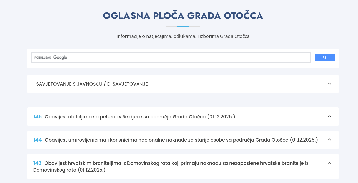 Na Oglasnoj ploči Grada Otočca možete preuzeti te pregledati obavijesti i odluke o isplati naknada i poklon bonova za: