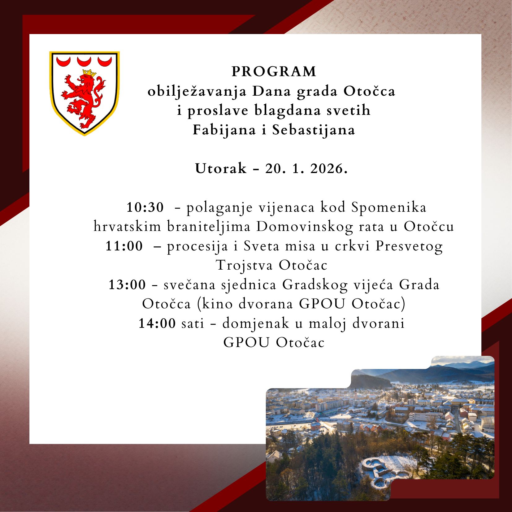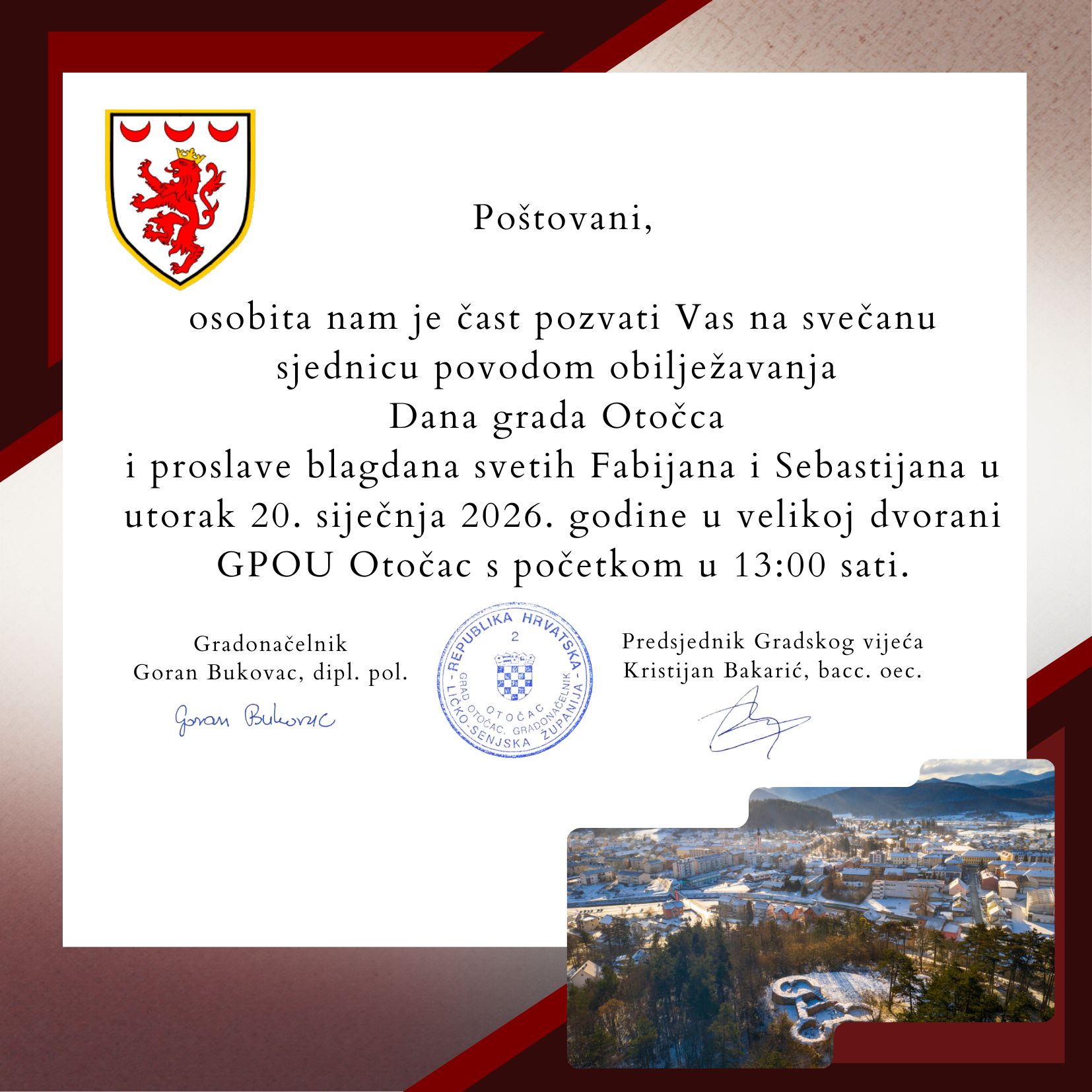 - 151Pozivnica i program - Svečana sjednica Gradskog vijeća Grada Otočca (7.1.2026.)
